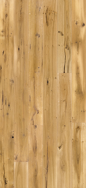 Dubová třívrstvá plovoucí podlaha Madeira Piccolo ve formátu prken 130 mm v třídění s velkým počtem suků. Prkna jsou zvýrazněna kartáčovaným povrchem a opatřena fází na všech čtyřech stranách. Povrch podlahy je chráněn přírodním matným lakem. Tento druh podlahy je vhodný na podlahové topení. Možnost instalace plovoucím způsobem nebo celoplošným lepením.