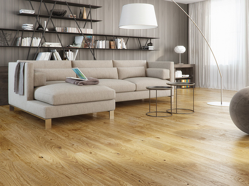 Dubová třívrstvá plovoucí podlaha podlaha s krásnou barvou a malým množstvím charakteristik dřeva. Přirozený charakter je zdůrazněn kartáčováním a čtyřstranná mikrofáze dodává podlaze dojem subtilnosti. Příjemná na dotek díky přírodnímu olejovému povlaku. Možnost instalace plovoucím způsobem nebo celoplošným lepením.